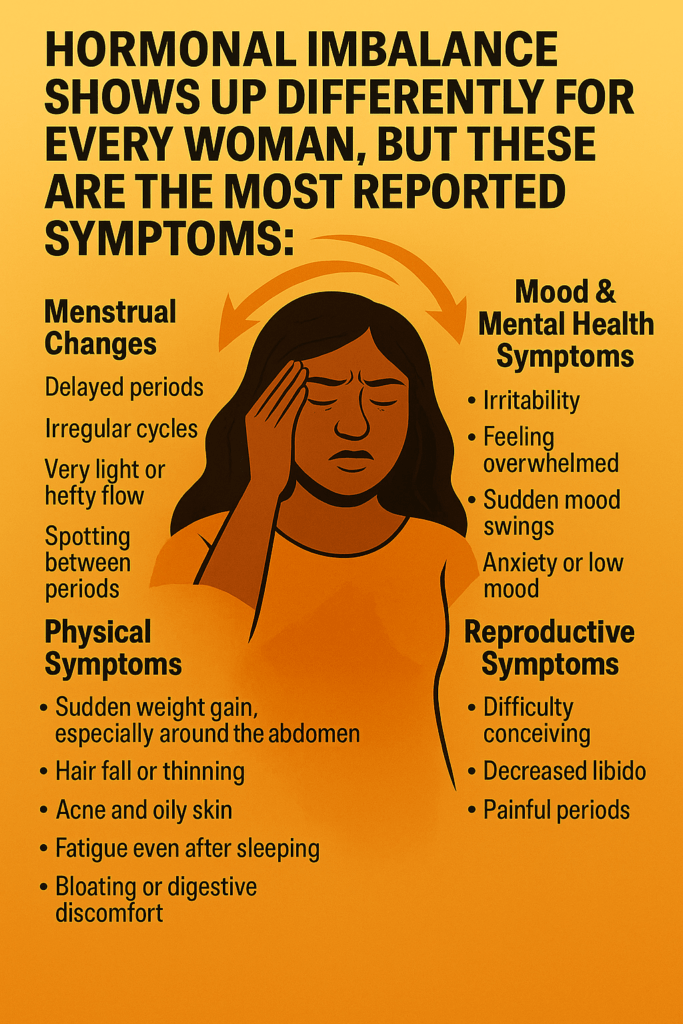 It doesn’t happen overnight. It builds silently — through stress, irregular meals, poor sleep, and constant emotional strain — until symptoms start to whisper: irregular periods, unexplained weight gain, acne, hair loss, irritability, or low energy.